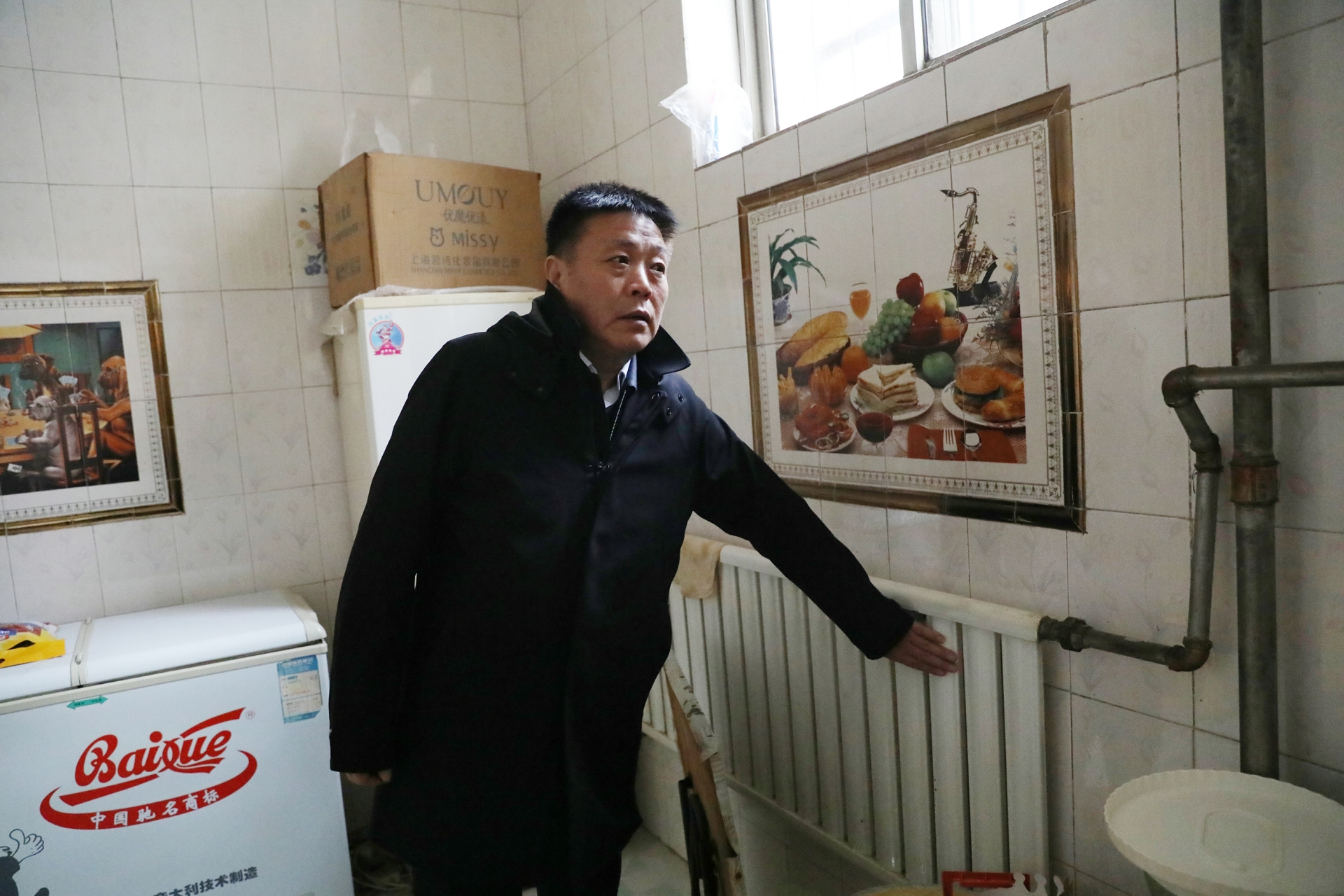 在財(cái)政局家屬院,有居民反映巷道坡下的居民家中不熱。馬董事長(zhǎng)一行立即趕往最末端的一居民家入戶查看,室內(nèi)溫度確實(shí)不高。馬福森董事長(zhǎng)當(dāng)即與副總經(jīng)理陳繼彤、總工程師昝啟民探討解決方案,即開(kāi)啟備用循環(huán)泵,調(diào)整頻率,加大流量,確保末端用戶家中溫度達(dá)標(biāo)。