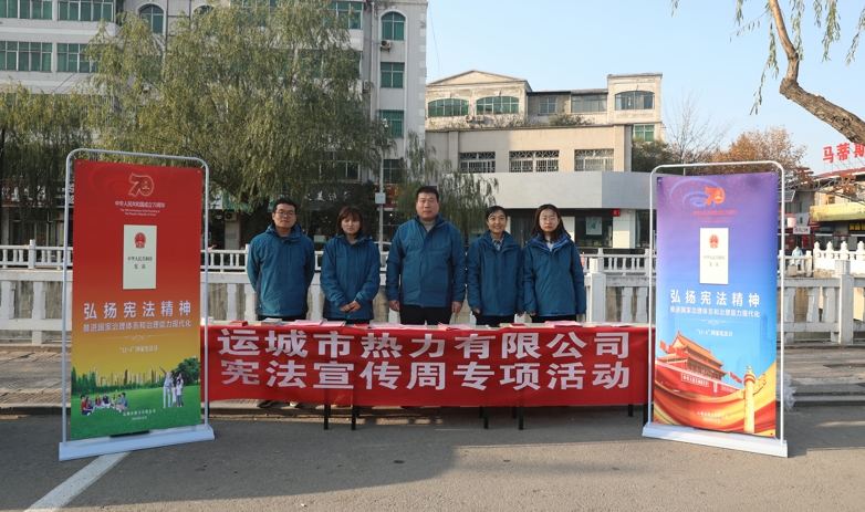 為搞好2019年度“憲法宣傳周”活動,公司制定了《運城市熱力有限公司2019年度“憲法宣傳周”活動實施方案》,陸續(xù)開展了政策解讀、法規(guī)宣講、宣傳展板、發(fā)放宣傳材料等多種活動,廣泛宣傳憲法法律知識及集中供熱政策常識。