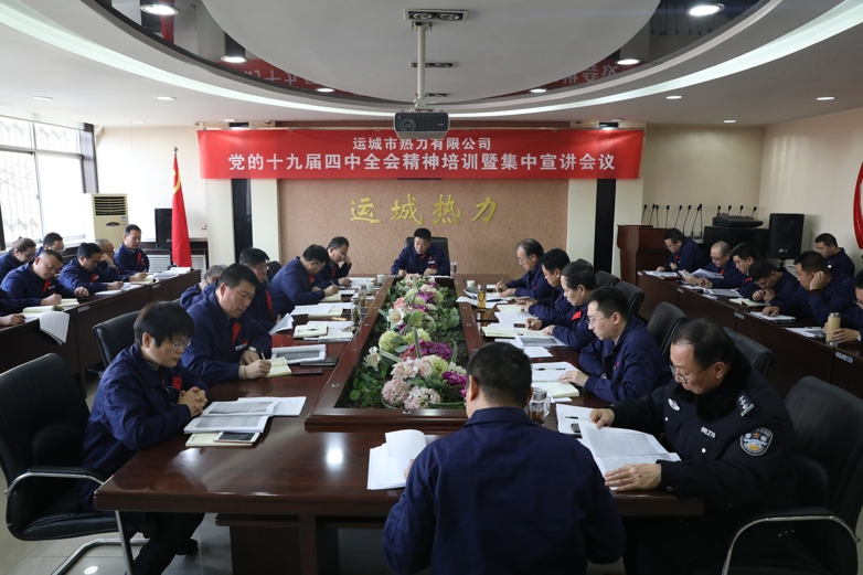 會(huì)上,馬福森同志深入闡釋了黨的十九屆四中全會(huì)召開(kāi)的重大意義,系統(tǒng)闡述了中國(guó)特色社會(huì)主義制度和國(guó)家治理體系的顯著優(yōu)勢(shì),并就堅(jiān)定制度自信、推進(jìn)國(guó)家治理體系和治理能力現(xiàn)代化、學(xué)習(xí)宣傳貫徹全會(huì)精神等談了認(rèn)識(shí)體會(huì)。他要求,公司上下要將學(xué)習(xí)宣傳貫徹全會(huì)精神作為重要政治任務(wù)來(lái)抓,進(jìn)一步提高政治站位,增強(qiáng)“四個(gè)意識(shí)”、堅(jiān)定“四個(gè)自信”、做到“兩個(gè)維護(hù)”,要結(jié)合當(dāng)前供熱工作,把全會(huì)精神用心學(xué)進(jìn)去、用力做起來(lái),密切聯(lián)系群眾,切實(shí)解決好廣大用戶反饋的熱點(diǎn)難點(diǎn)問(wèn)題,始終把用戶滿意率作為干好工作的最高標(biāo)準(zhǔn),確保十九屆四中全會(huì)精神在公司落實(shí)見(jiàn)效。