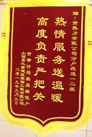 一年里,我們完成圣惠路 — 紅旗街管網(wǎng)工程建設(shè)、三供一業(yè)改造工程建設(shè)移交、老舊小區(qū)分戶改造項(xiàng)目工程等;供熱運(yùn)行啟動(dòng)以來,平衡管網(wǎng)、晝夜巡檢、進(jìn)區(qū)入戶訪民問暖,解民憂、保供暖……室外寒風(fēng)刺骨,室內(nèi)溫暖如春,廣大群眾在感受溫暖的同時(shí),紛紛送來牌匾、錦旗以表謝意。優(yōu)質(zhì)服務(wù)贏贊譽(yù)、面面錦旗表心意,雖然是一面很普通的錦旗、牌匾,但它對熱力人來講是新年最好的禮物,它象征著用戶對我們工作的最大肯定,它代表的是一份認(rèn)可、一份信任、一份期盼,更是一份責(zé)任。