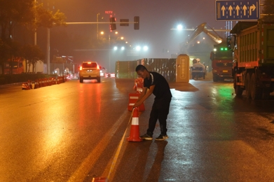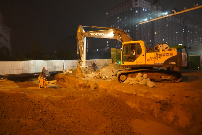 發(fā)令槍已經(jīng)打響,時不我待。在東部新區(qū)集中供熱項目部臨時黨支部統(tǒng)一部署下,一標段現(xiàn)場管理組的同志協(xié)同全體參建單位,按照施工預(yù)案,各司其職,嚴陣以待,黨員干部沖鋒在先,兼顧現(xiàn)場管理和地面交通疏導(dǎo),大家以小時為單位,各道工序緊密銜接,有序推進,當(dāng)晚9時許,瀟瀟雨聲中,溝槽開挖,經(jīng)一夜持續(xù)機械加人工作業(yè)至周六13時,溝槽成型,平整,碾壓,墊沙,下管,16時許,對管焊接至周日零時,探傷進場,經(jīng)拍片研判合格后,2點開始保溫,4時許,主路段開始回填,分層碾壓,同時路口北側(cè)彎頭焊接、探傷、保溫緊張銜接,至周日晚11時,清掃人員、水車,工人就位,準備拆除圍欄,周一凌晨1點,最后一道回填碾壓完成,清掃和沖洗路面……5時許,天色放亮,紅旗街韓信路口,路面清潔,交通恢復(fù)正常。