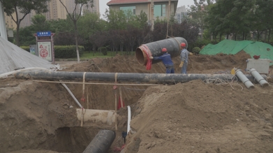 8月17日清晨,時值上班高峰期,紅旗東街韓信路交叉口,車流如織,秩序井然,經(jīng)過兩晝夜持續(xù)奮戰(zhàn),供熱管網(wǎng)穿越施工順利完成,該處交通于周一工作日凌晨恢復(fù)正常。