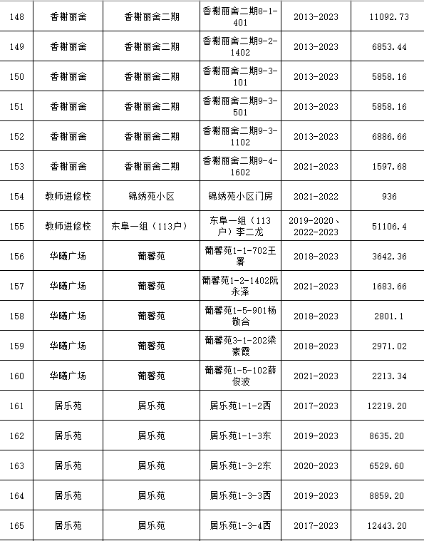具體欠費名單如下:
