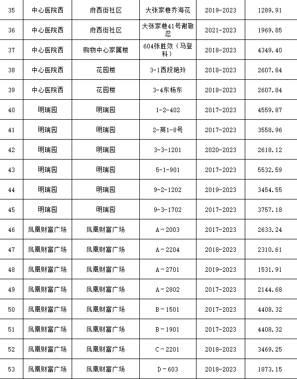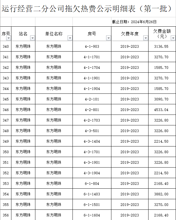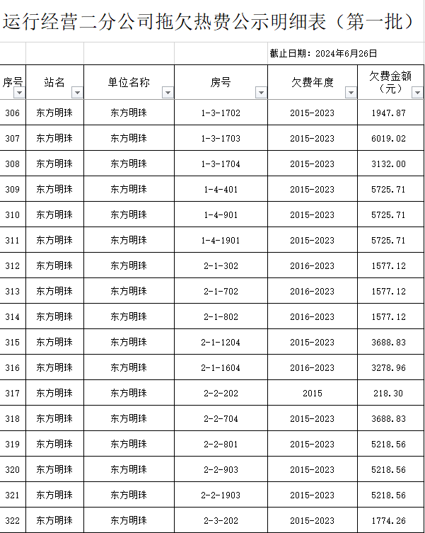 根據(jù)《運城市中心城區(qū)集中供熱管理暫行辦法》第二十五條及運價管字【2009】199號《關(guān)于明確集中供熱收費有關(guān)問題的通知》第一項“城市供熱實行繳費用熱的原則”,截至目前,仍有部分用戶未繳納2023年度及以前年度熱費,直接影響了供熱企業(yè)正常生產(chǎn)運行。為了加快欠費回籠,確保供熱企業(yè)生產(chǎn)運行,請下列欠費的用戶,在2024年10月30日之前交清拖欠熱費。否則,供熱企業(yè)有權(quán)依法維護自身權(quán)益,拖欠用戶將承擔(dān)相應(yīng)的責(zé)任和由此造成的一切后果。也通過媒體公示,讓社會監(jiān)督,讓我們共同行動,共同營造良好供熱運營環(huán)境和氛圍,為廣大居民溫暖過冬發(fā)揮各自應(yīng)有的作用。